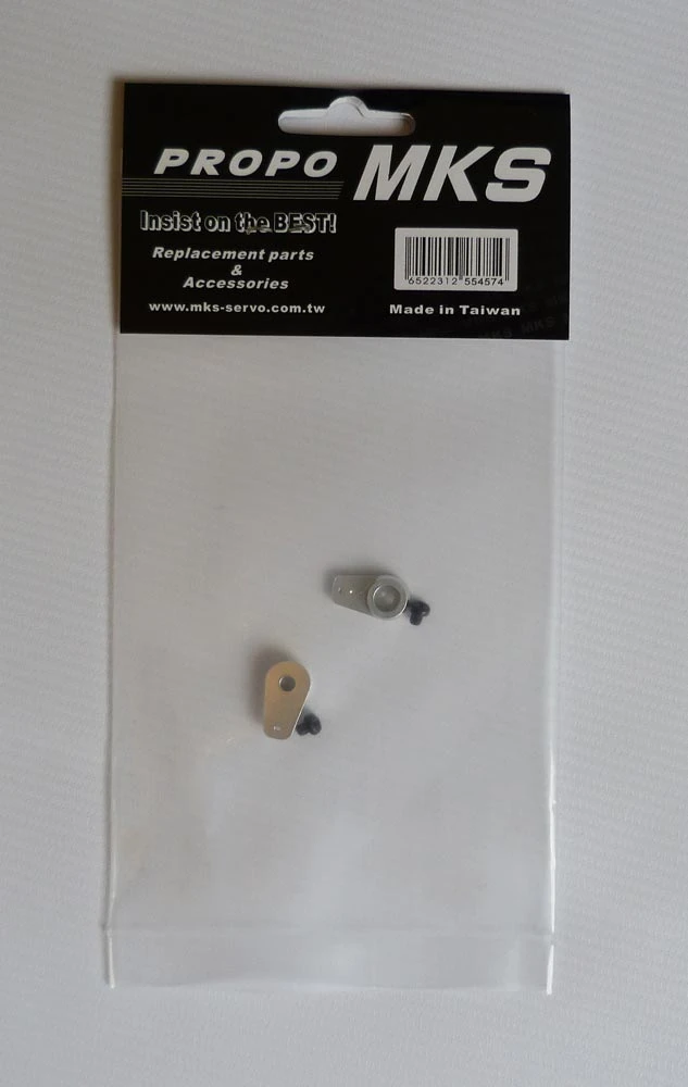 Heavy duty aluminium servo output arm (horn) package for the MKS DS6125 Mini and all versions of the MKS DS6125 servos. Also fits HBL 6625, HV6125e, HV6100, DS6100, DS75K and DS65K servos.