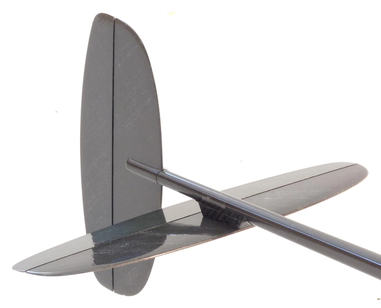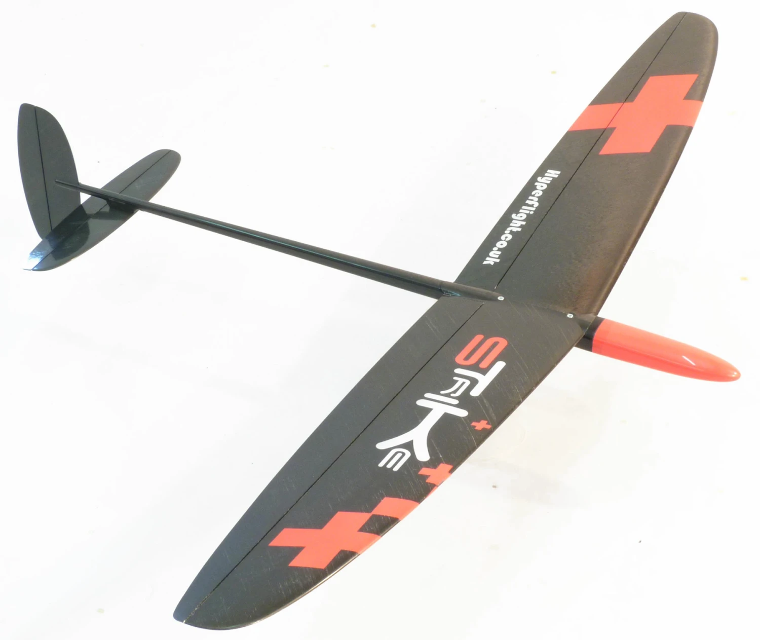The Strike 3 is superbly made using 30 g/m2 Carboline spread carbon, the model is exceptionally light, while also being strong and very rigid, allowing high launches. Still air times of 2 minutes have been reported by strong launchers, and pilots enjoy the excellent performance and sweet handling. Its full span ailerons allow camber adjustment in flight, giving it a wide speed range, allowing it to be flown in moderate winds, which is unusual for 1m gliders.