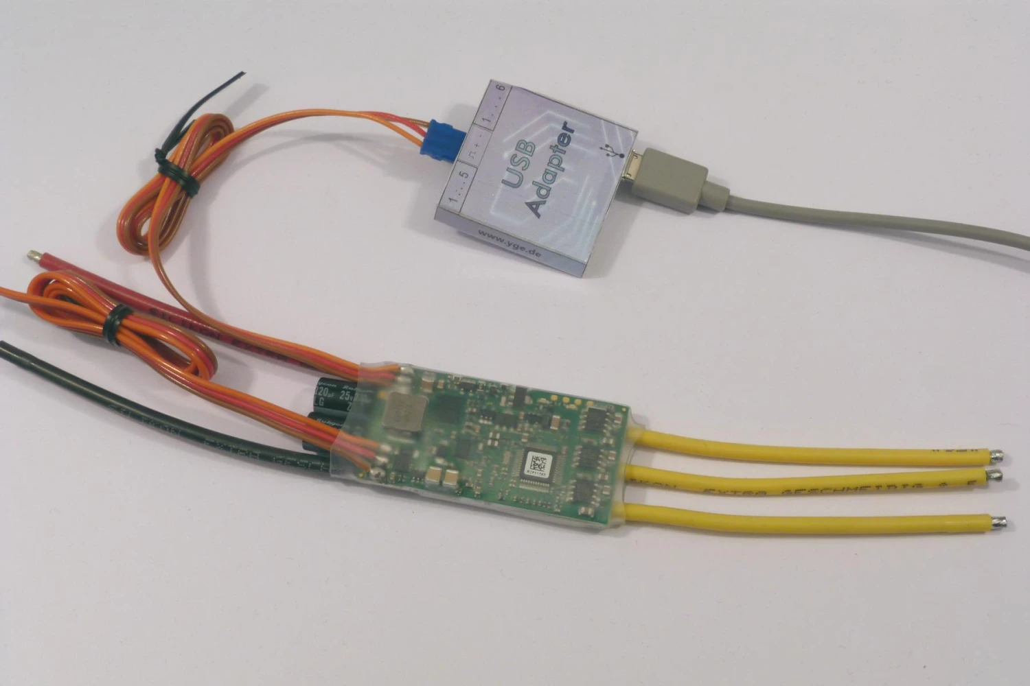 The YGE USB Adaptor for Telemetry ESCs is used for setting-up YGE telemtery speed controls and updating the firmware.